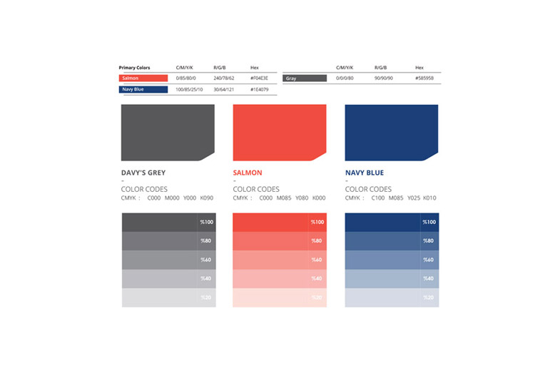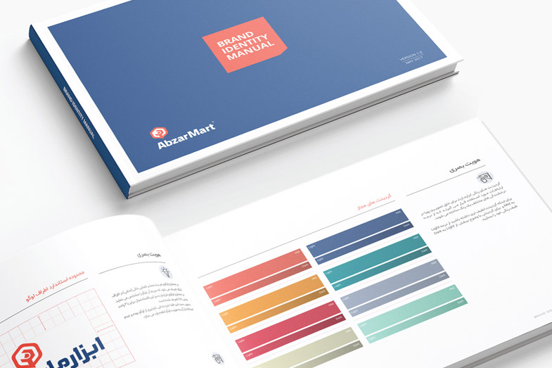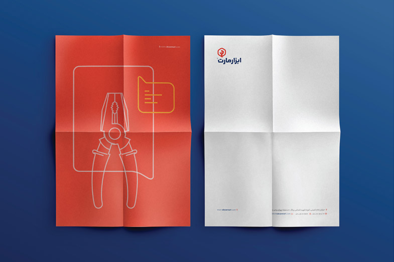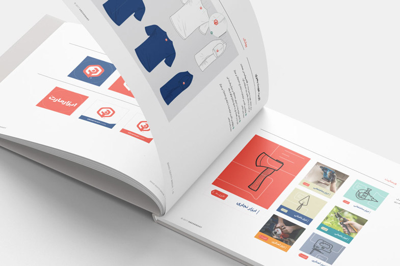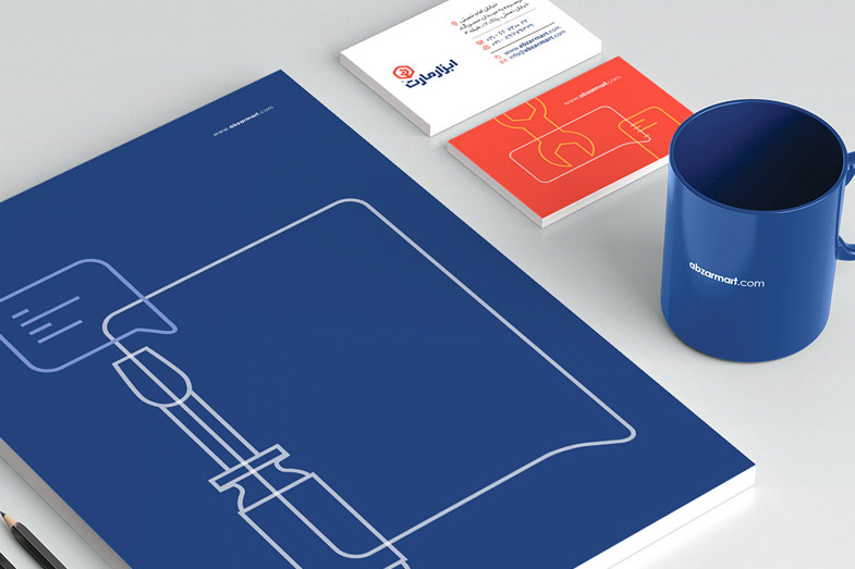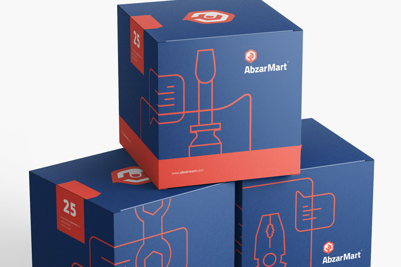 In the first step of logo design, the three elements, namely content, tools, and online-shopping, were combined. Besides, a logotype was designed that sought to reach out to specific brand audiences using the quality of angled lines. The two complementary colors, Navy blue, and Salmon were chosen as the primary brand colors, high contrast enough to create a vibrant atmosphere for the target audience. Different tools line icons appear throughout the packaging and over stationery, emphasizing the brand’s messages and tying the elements of the identity together. For Abzarmart, a sixty-page brand guide was designed, with detailed descriptions of how to use different brand elements for both digital and print use