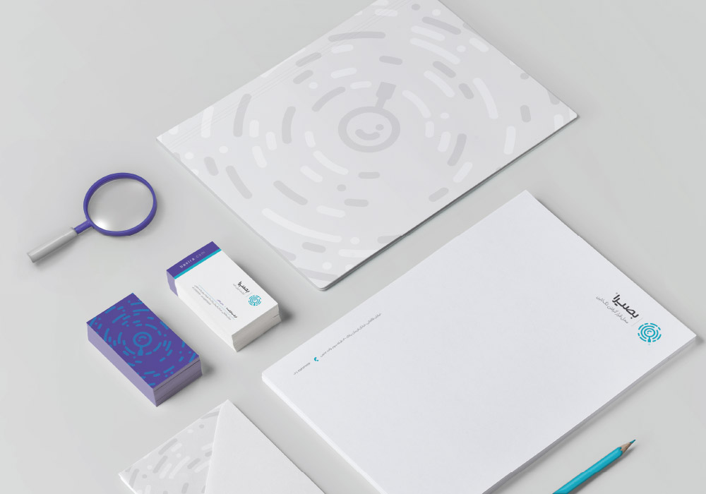 The identity introduces a sign that is made up of circular lines representing data and a magnifier in between, which resemble a scientist who strives to realize patterns and hidden relations amongst piles of information. These concentric circles act like a playful visual metaphor conveying the brand's technologically active part. Due to the direct connection of the brand to the small business executives who receive high salaries and are seeking a social position, I decided to use purple. Purple, in addition to signifying wisdom and dignity, has historically represented wealth and capital. Alongside this color, I also found it appropriate to use blue, which is favored by 50% of men.