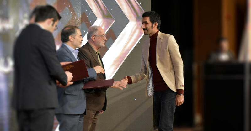 Reza Maleki receiving first prize in visual identity design contest | Teharn, 2019