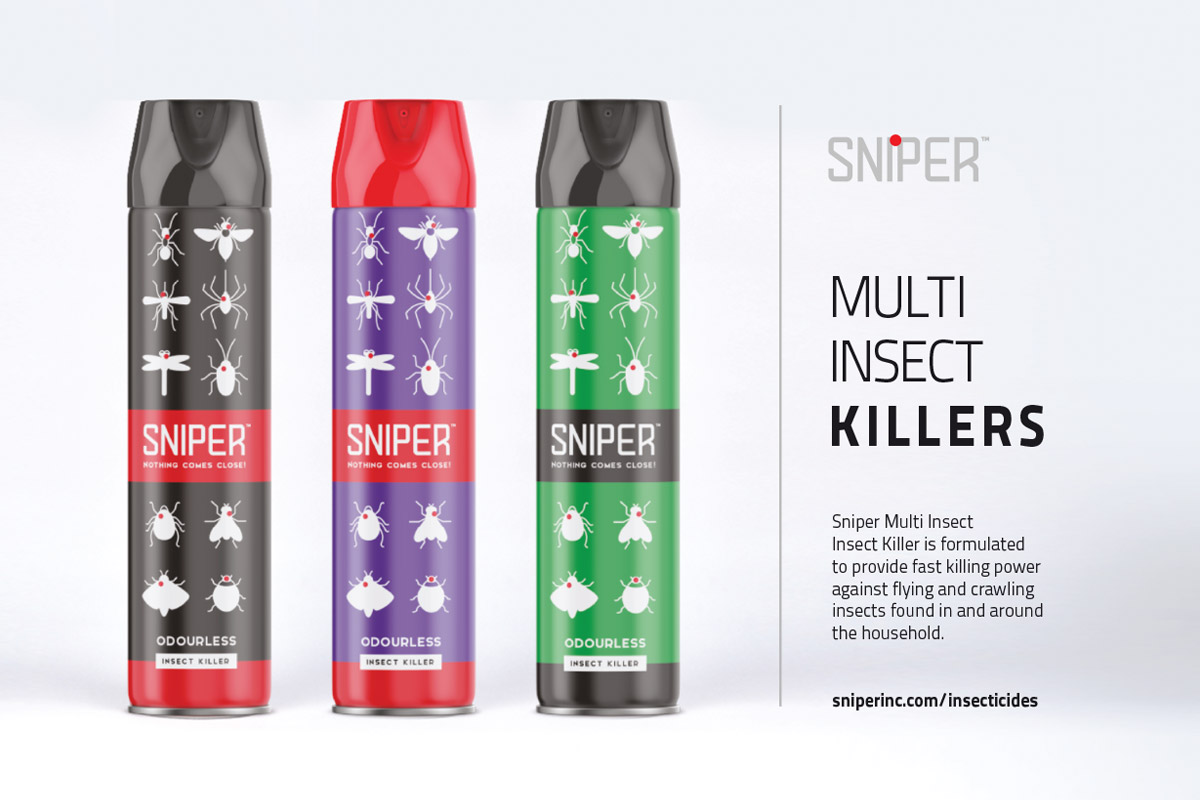 Sniper multi insect killer is formulated to provide fast killing power against flying and crawling insects found in and around the household.